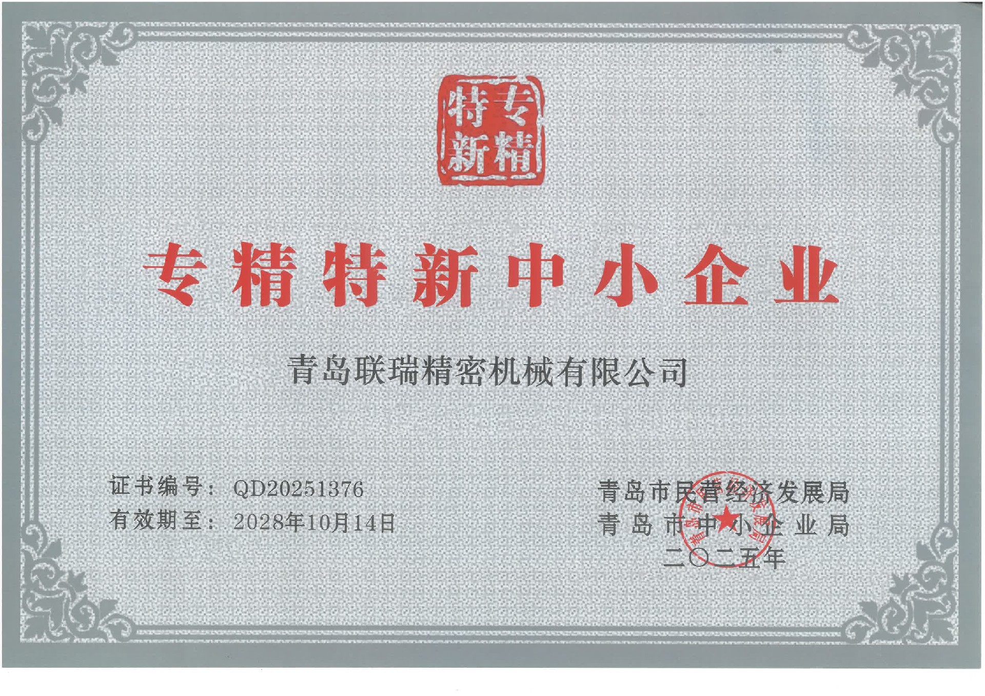 通过专精特新中小企业资格认定并取得证书;